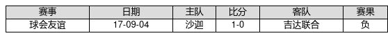 吉达连合 VS 沙迦两队近10年的交战次数为1场,吉达连合0胜0平1负,赢球概率为0.0%,平局概率为0.0%,输球概率为100.0%。