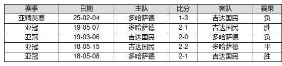 多哈萨德 VS 吉达国民两队近10年的交战次数为5场,多哈萨德2胜1平2负,赢球概率为40.0%,平局概率为20.0%,输球概率为40.0%。