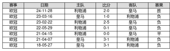 利物浦 VS 皇马两队近10年的交战次数为7场,利物浦1胜1平5负,赢球概率为14.3%,平局概率为14.3%,输球概率为71.4%。